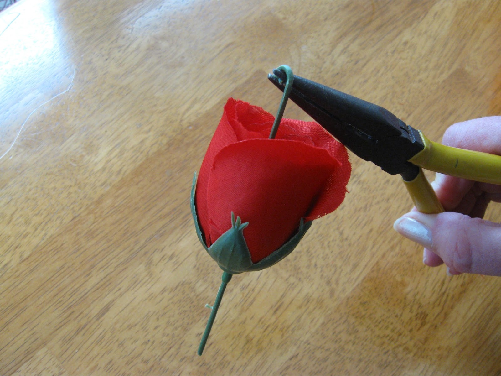 This keeps the rose head secure and from coming off the stem.(can also use glue on the
